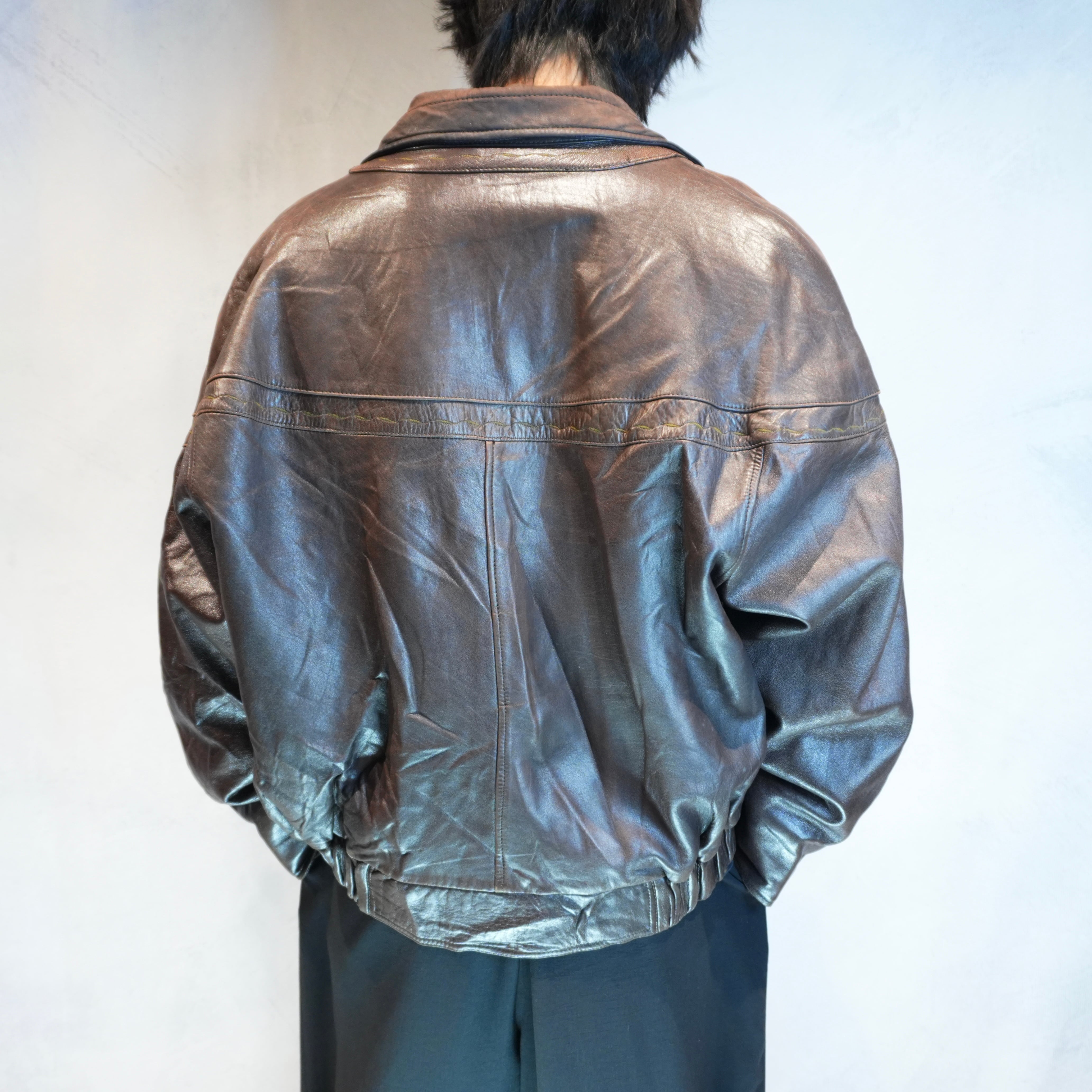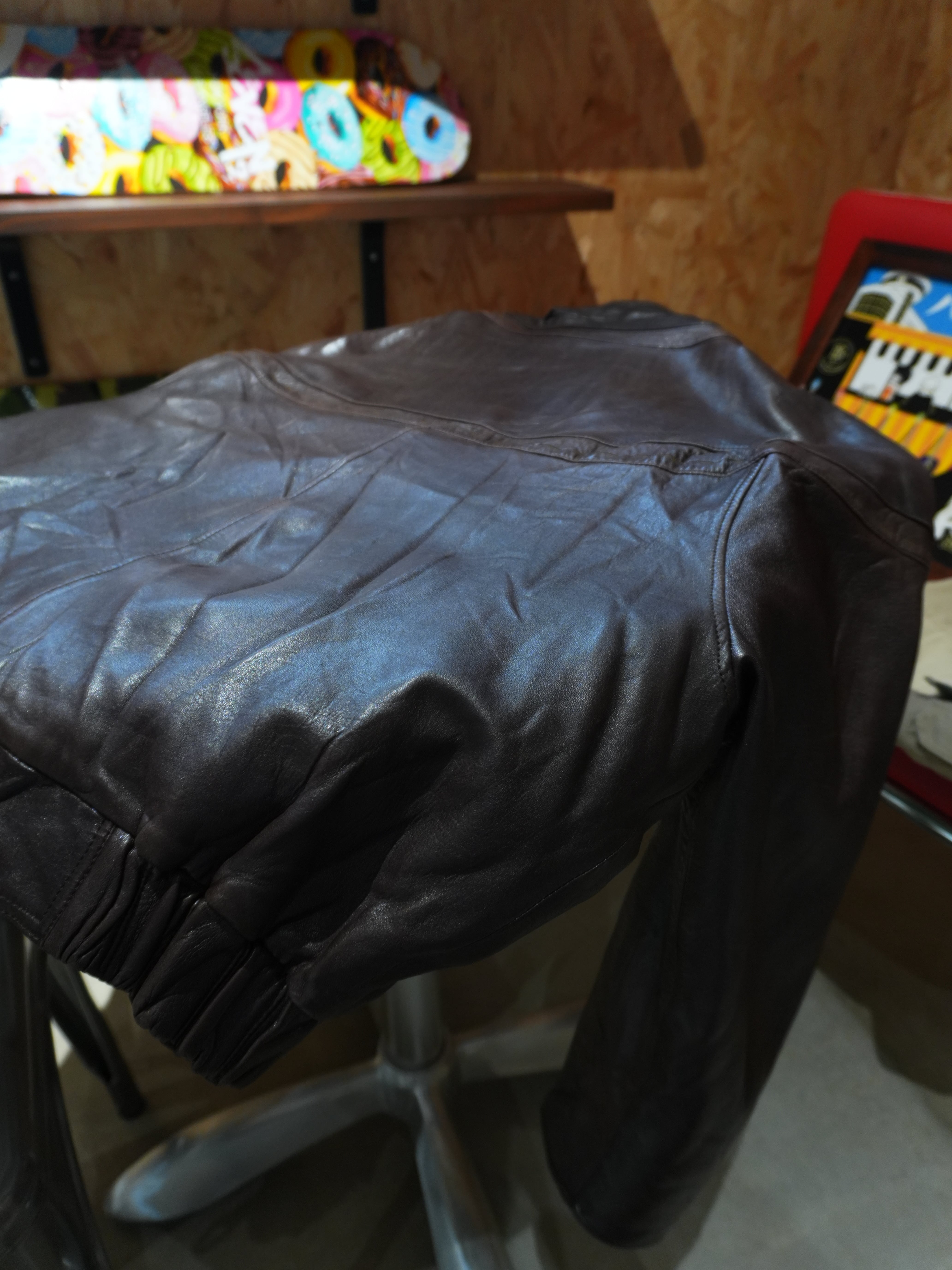 味のあるブラウンカラーが魅力的なレザーブルゾンの入荷です.