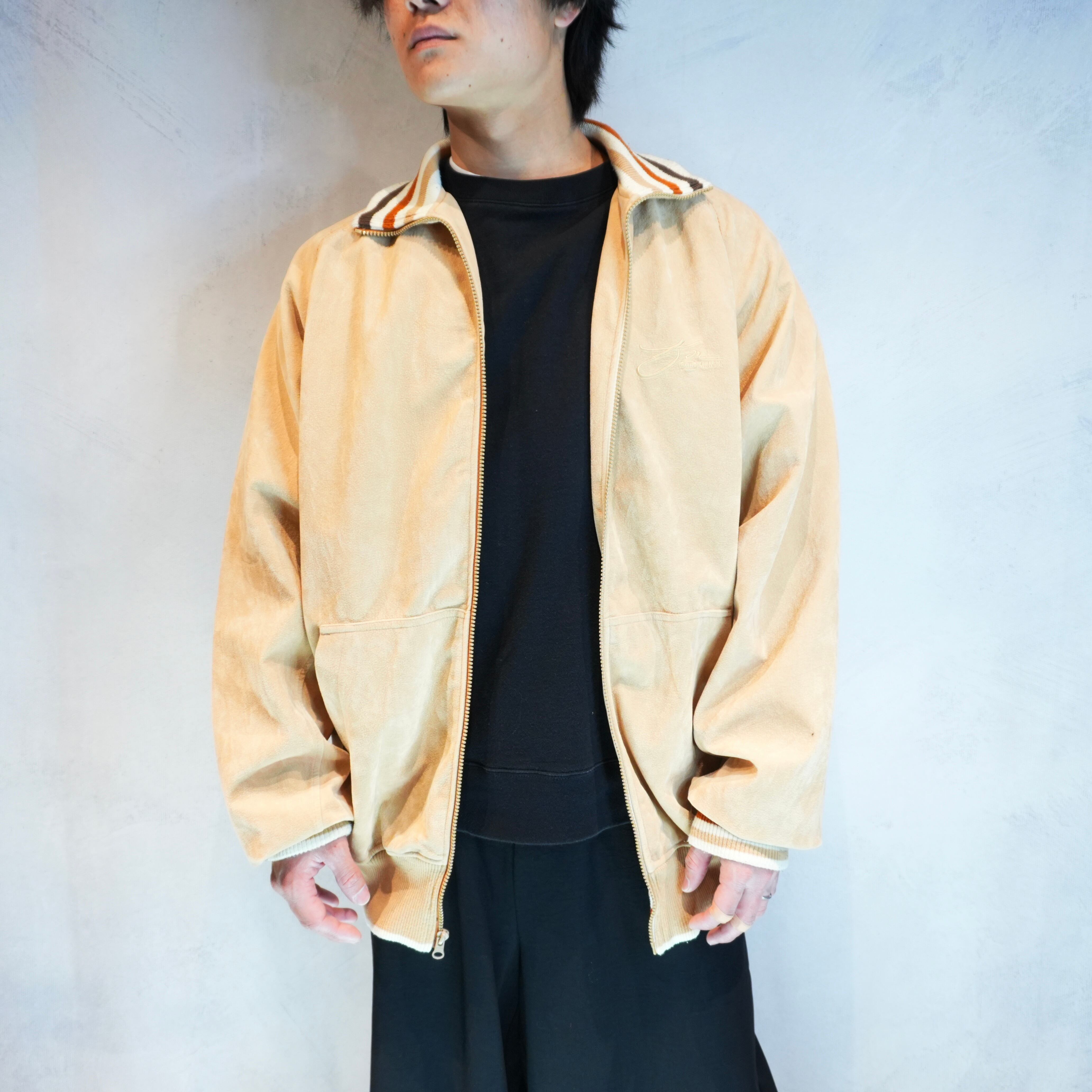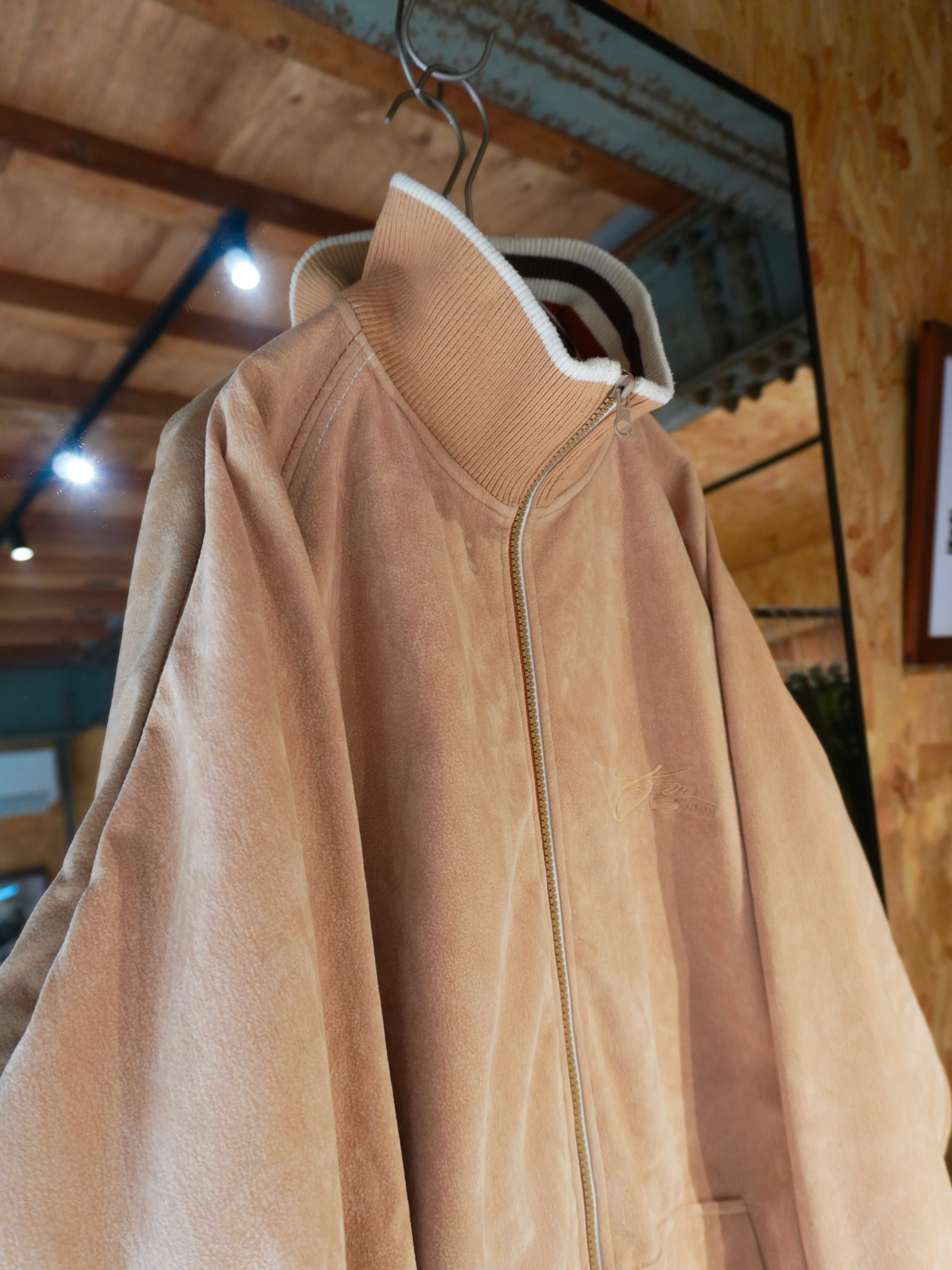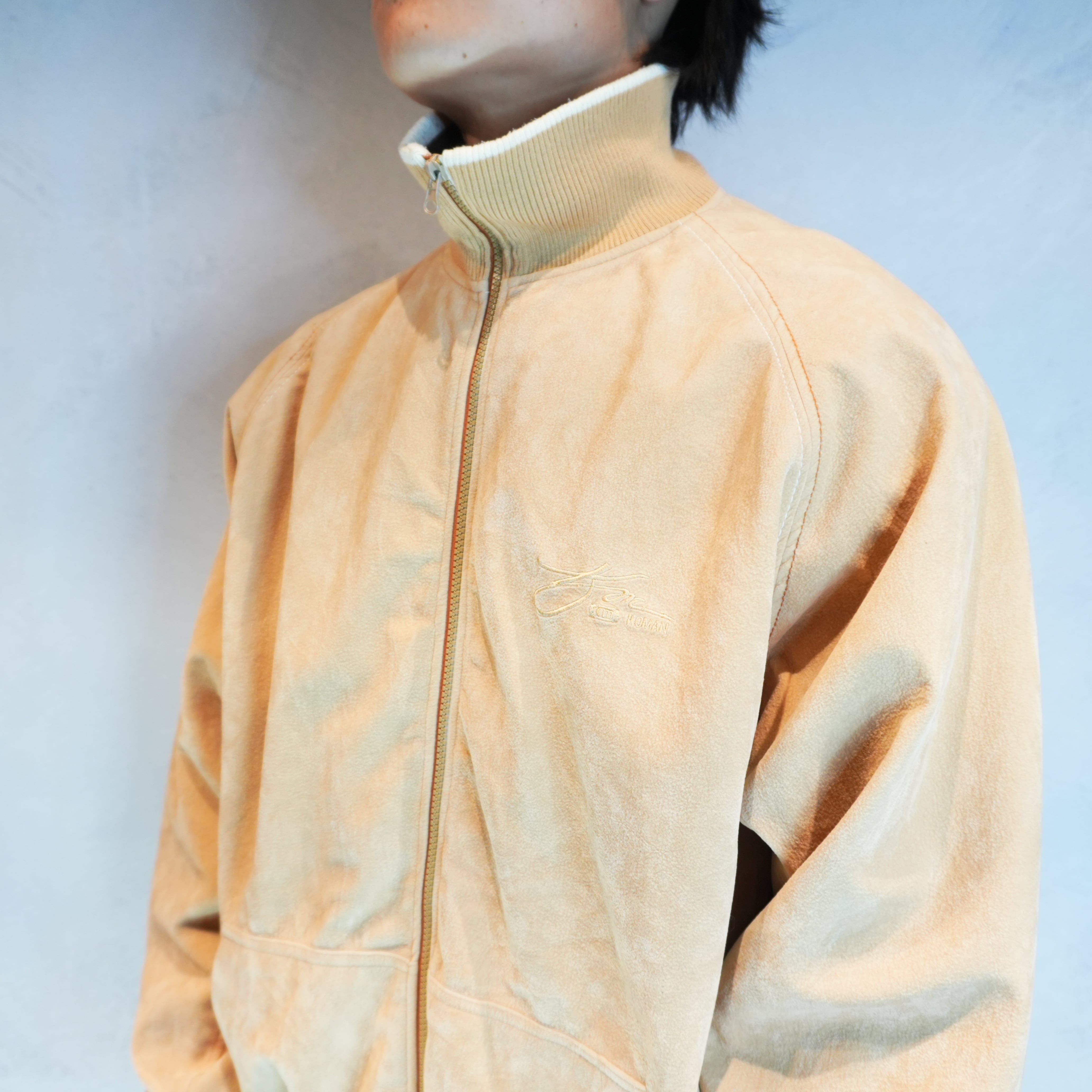 " 'KOMAN' over silhouette beige color fake suede track jacket "