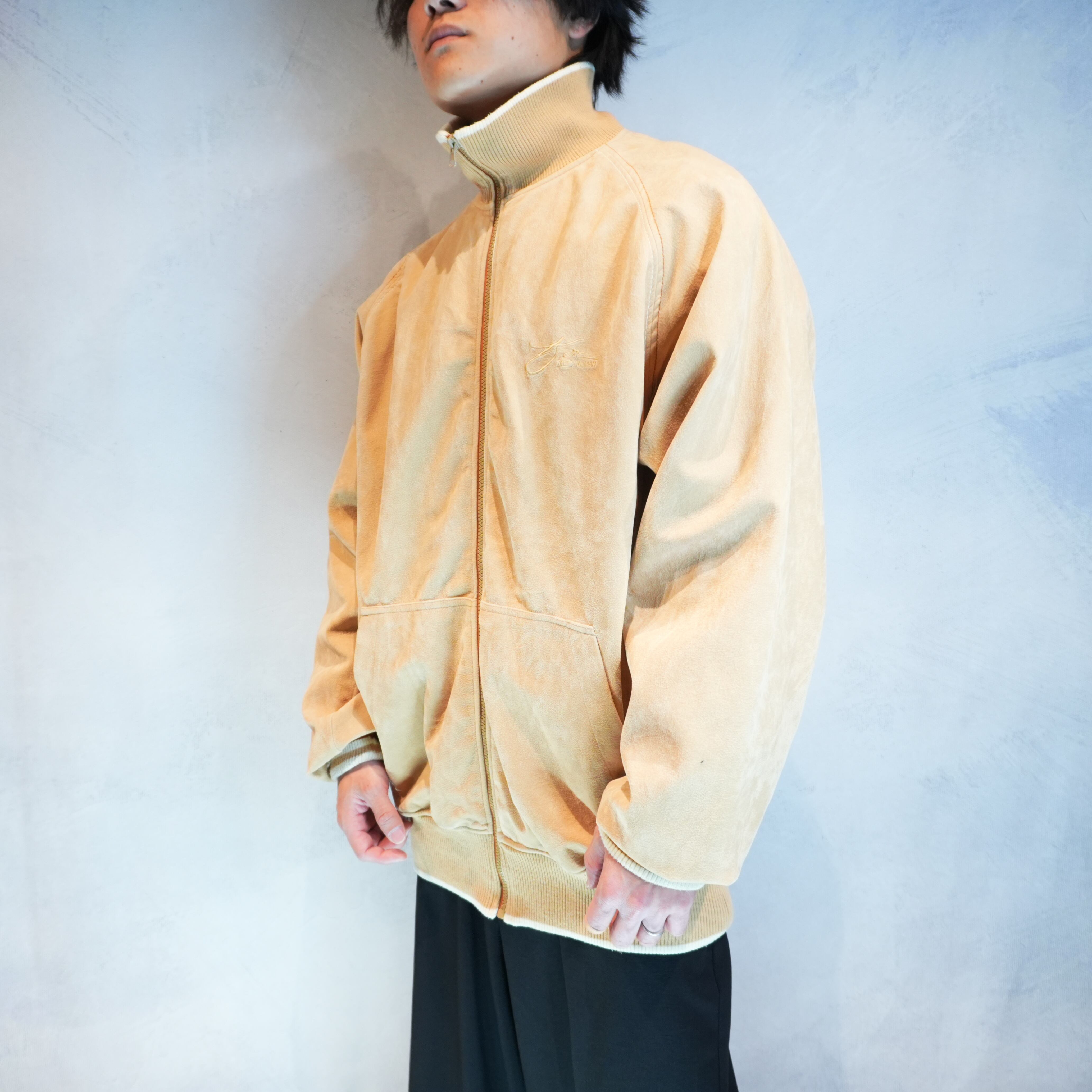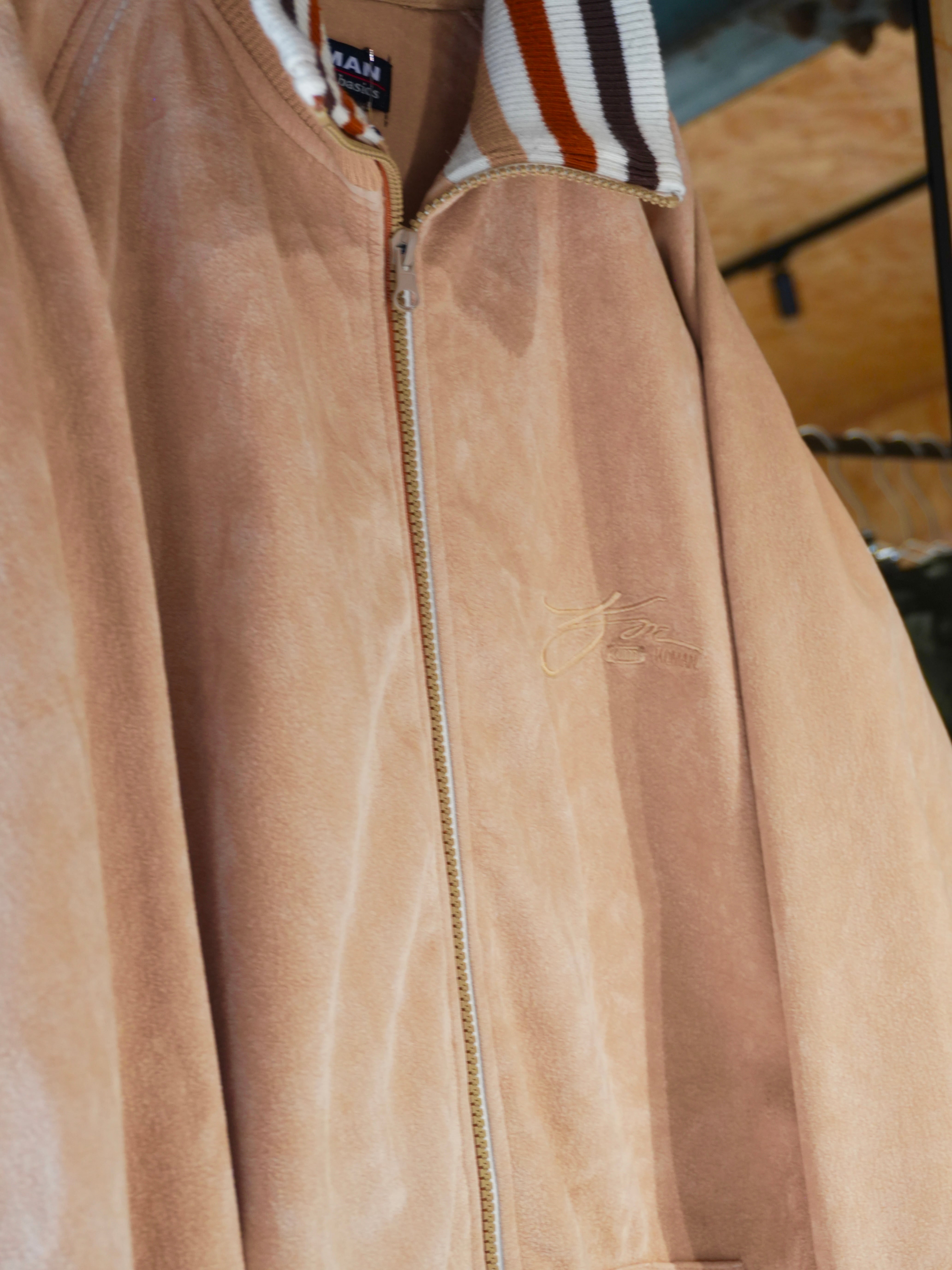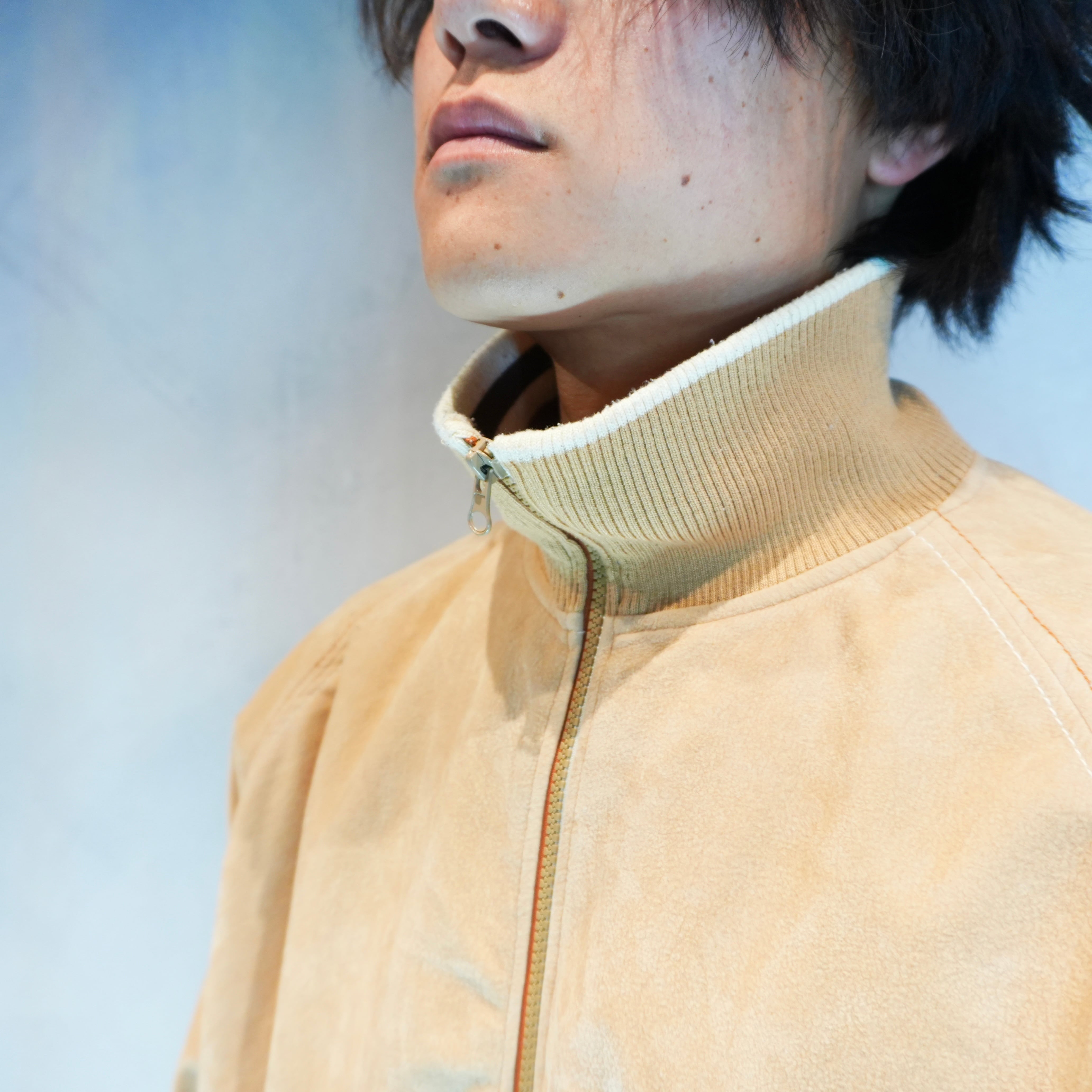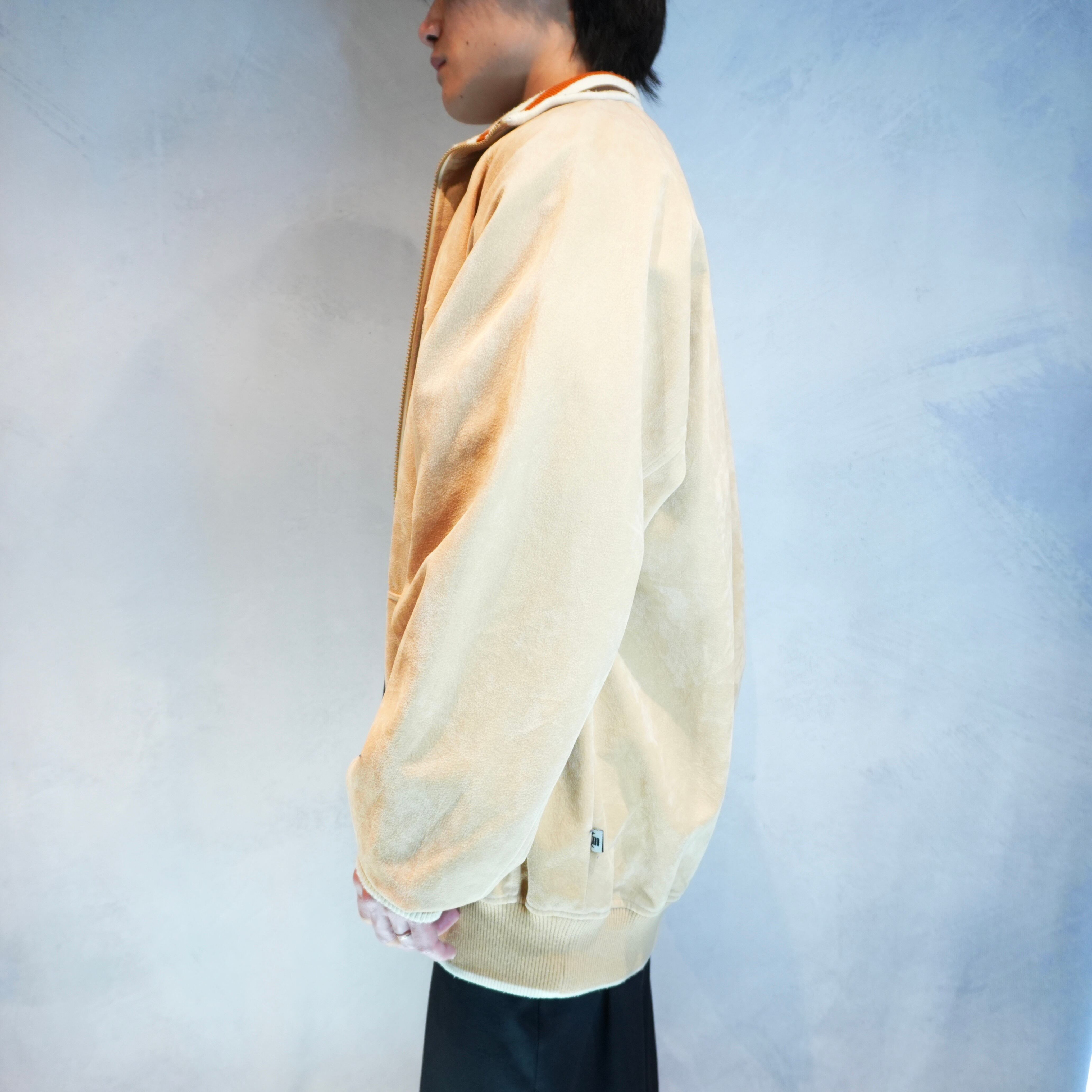 " 'KOMAN' over silhouette beige color fake suede track jacket "