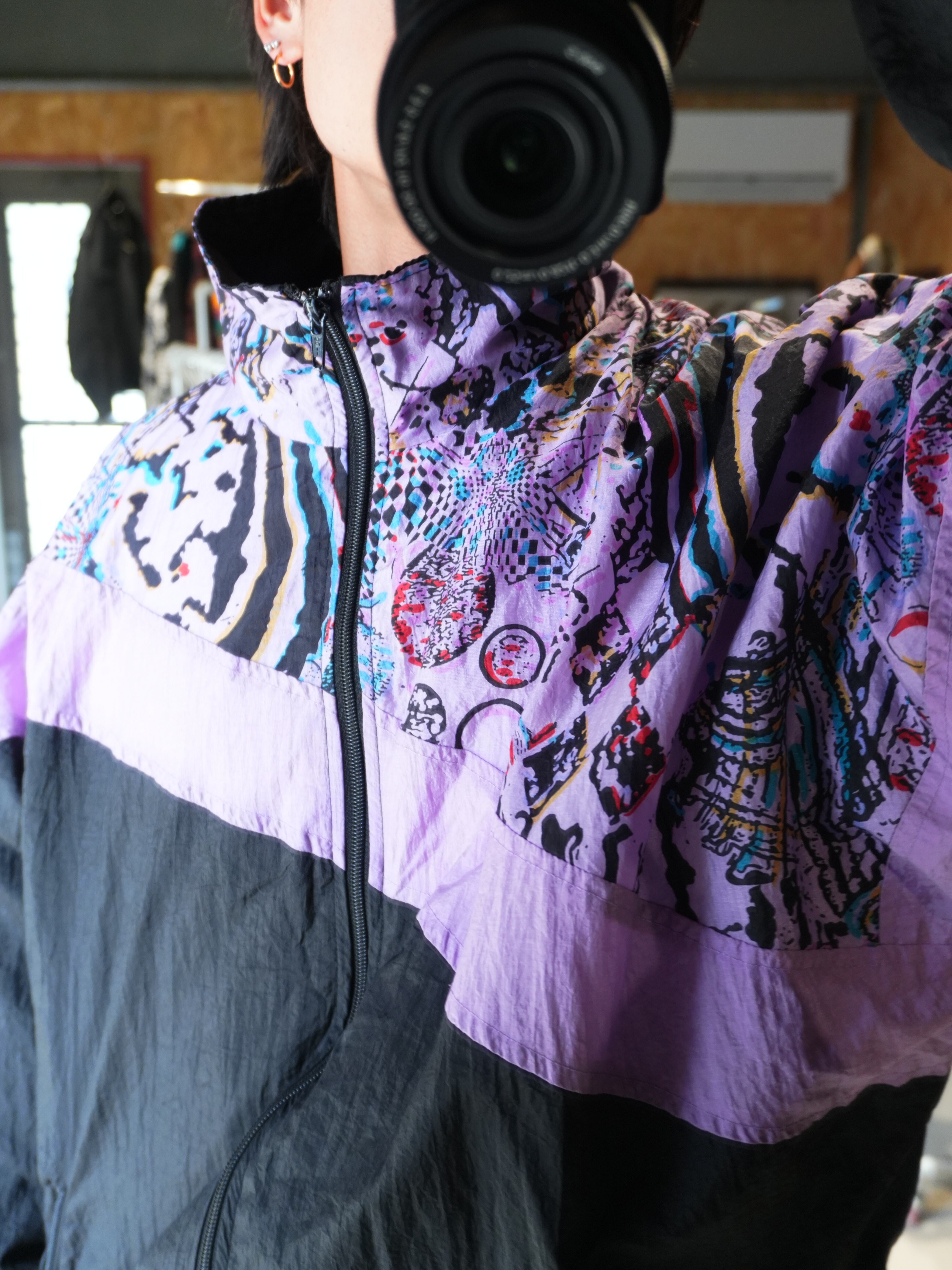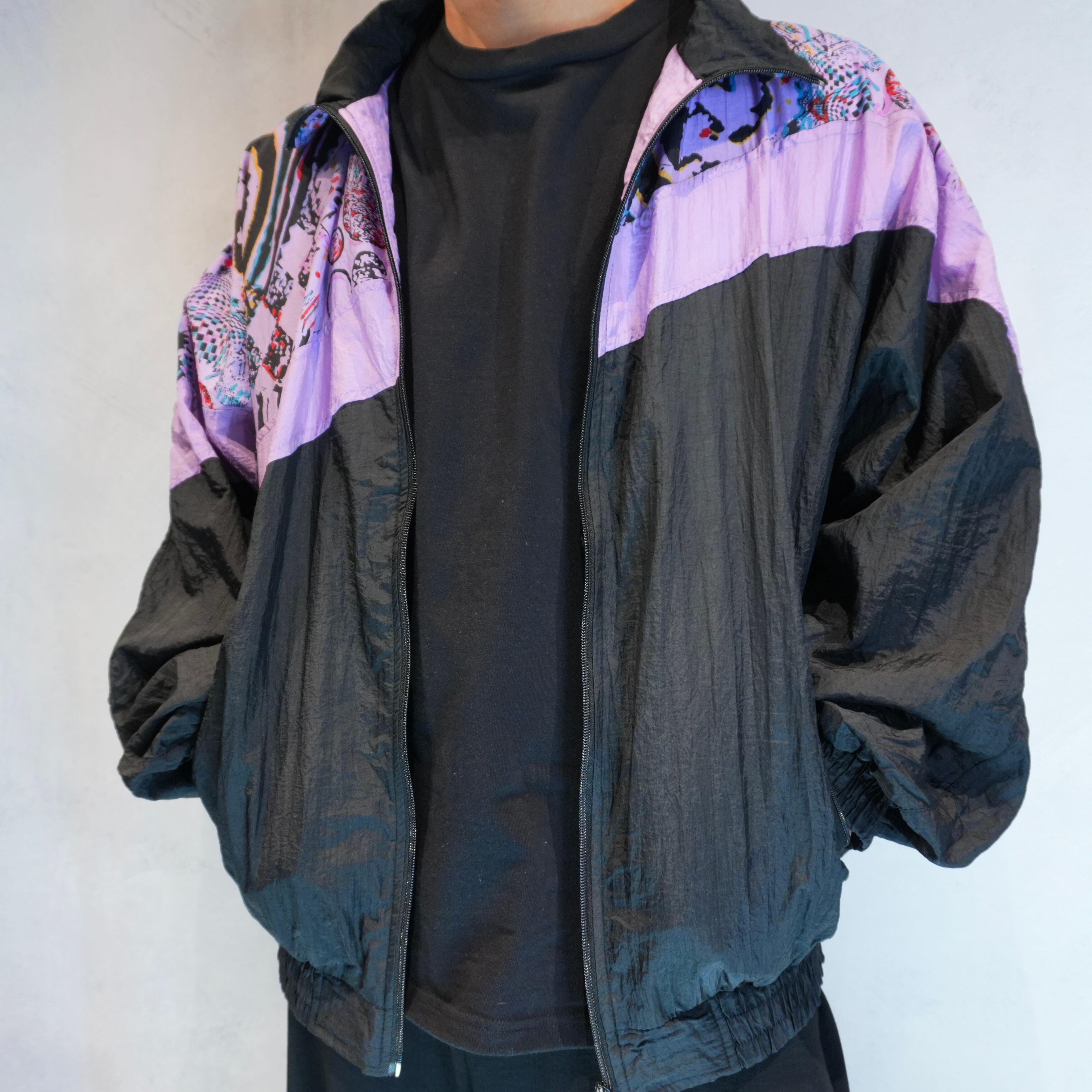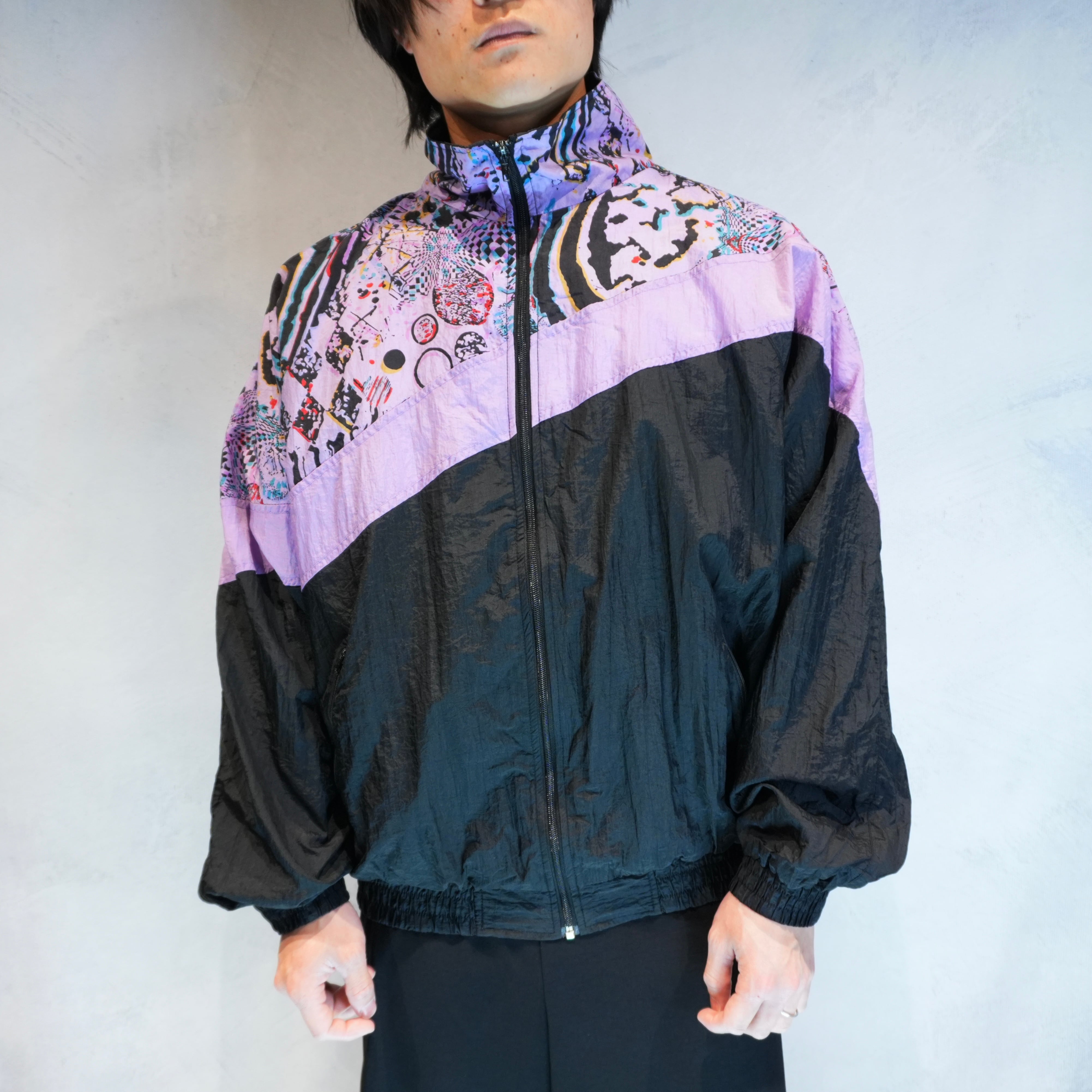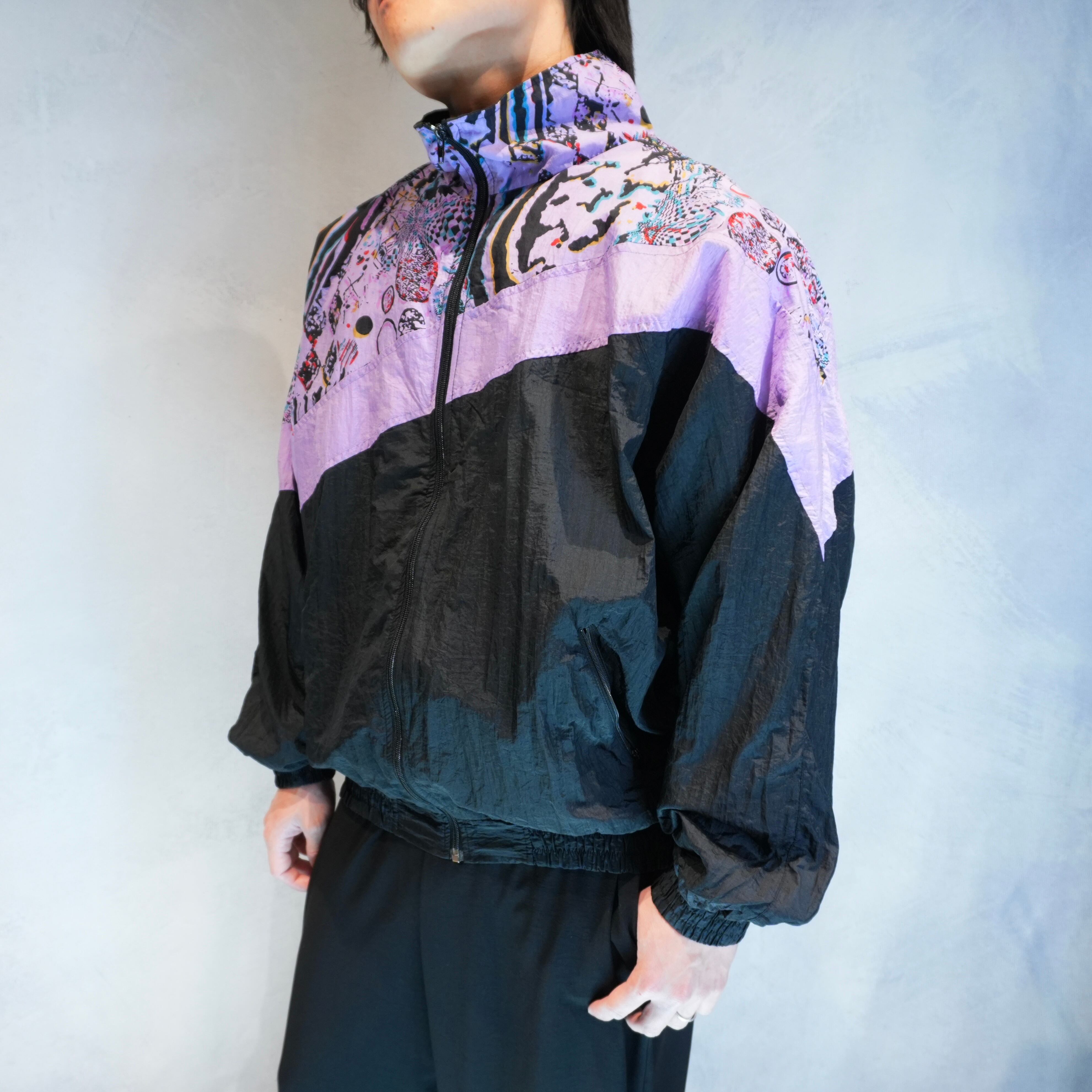 " good silhouette bi-color switching 'Abstract Pattern' design nylon jacket "