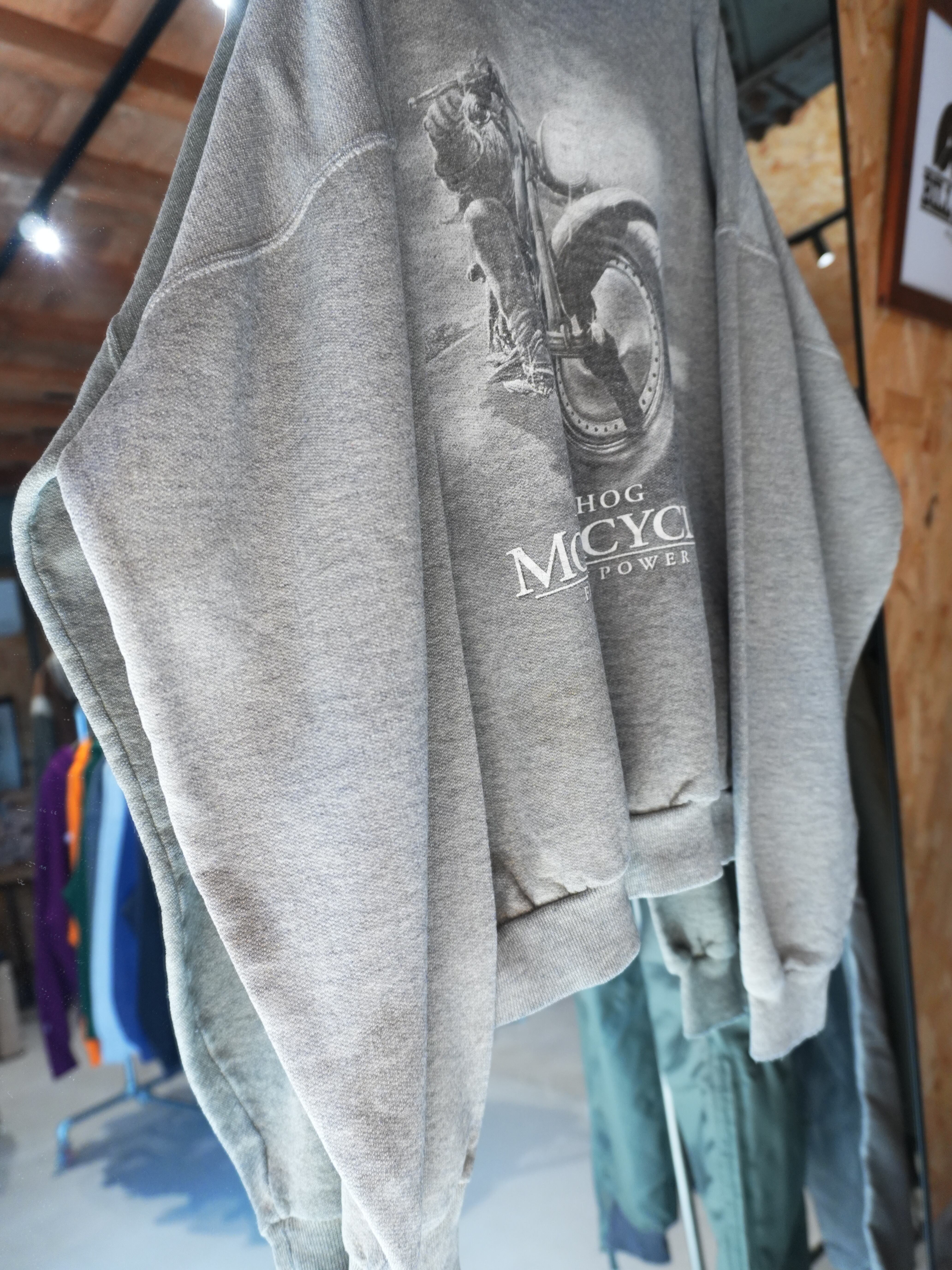 " over silhouette fade gray color 'ROAD HOG MOTORCYCLE' logo design sweat "