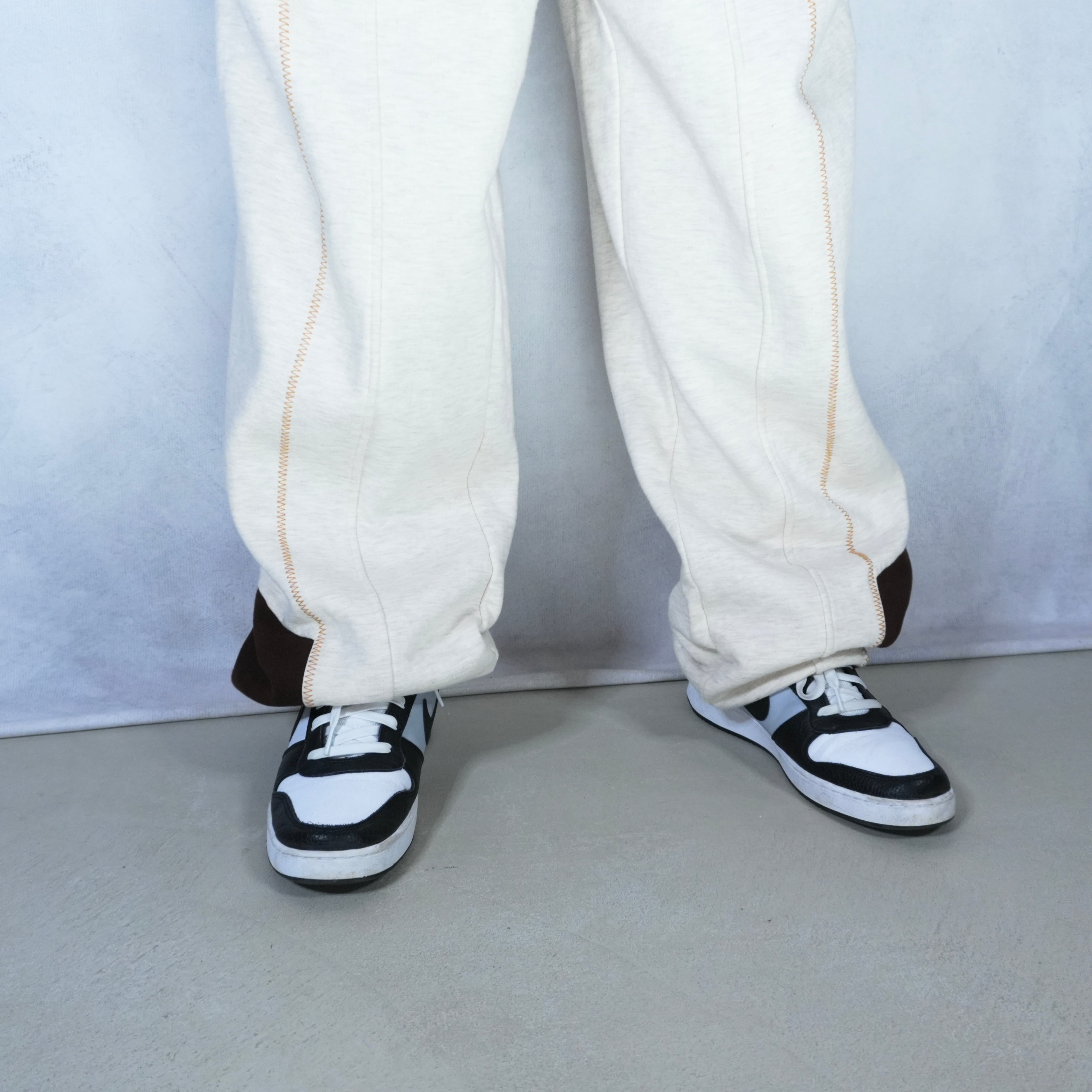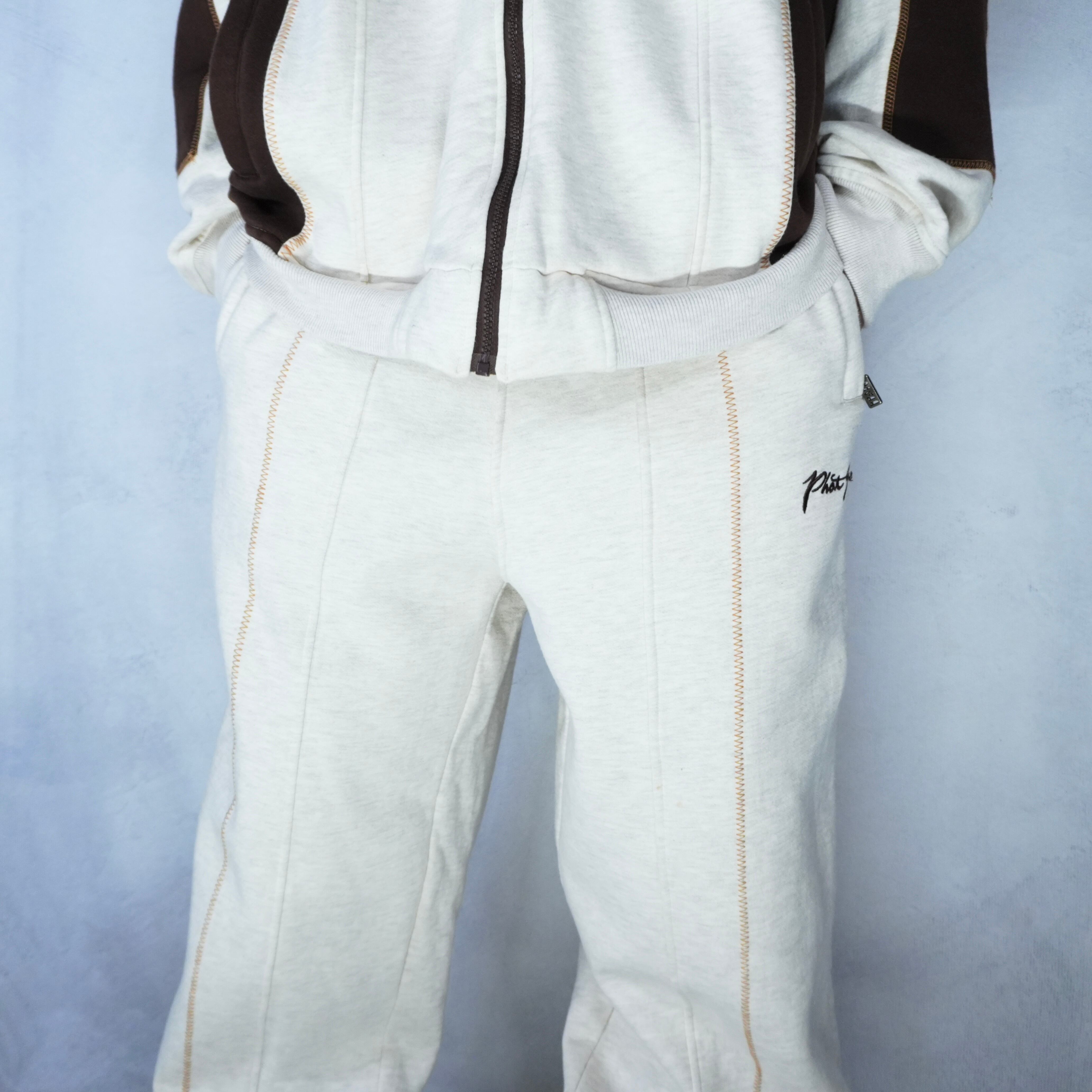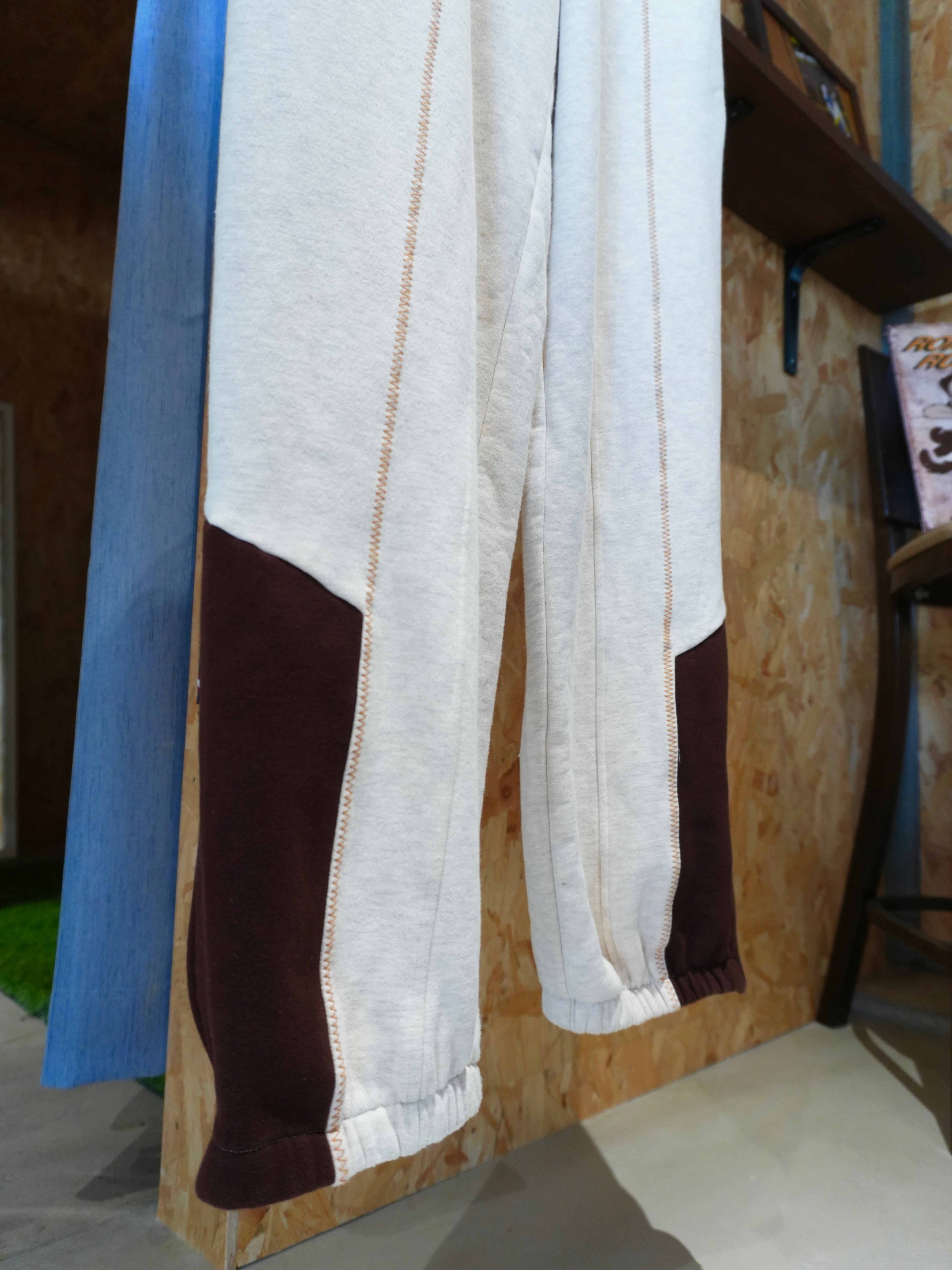 アイボリーベースにブラウンの切り替えが良い配色のトラックスーツ.