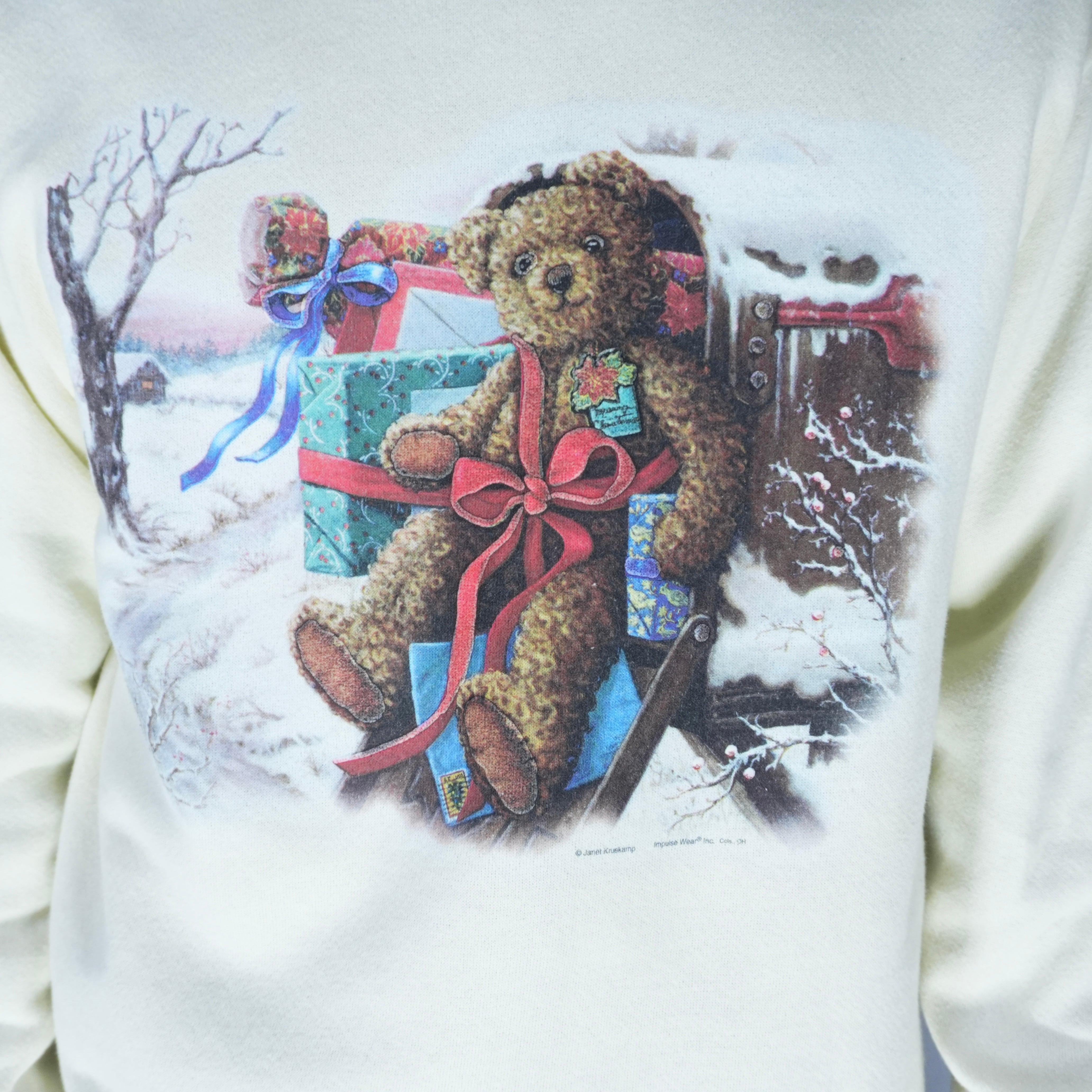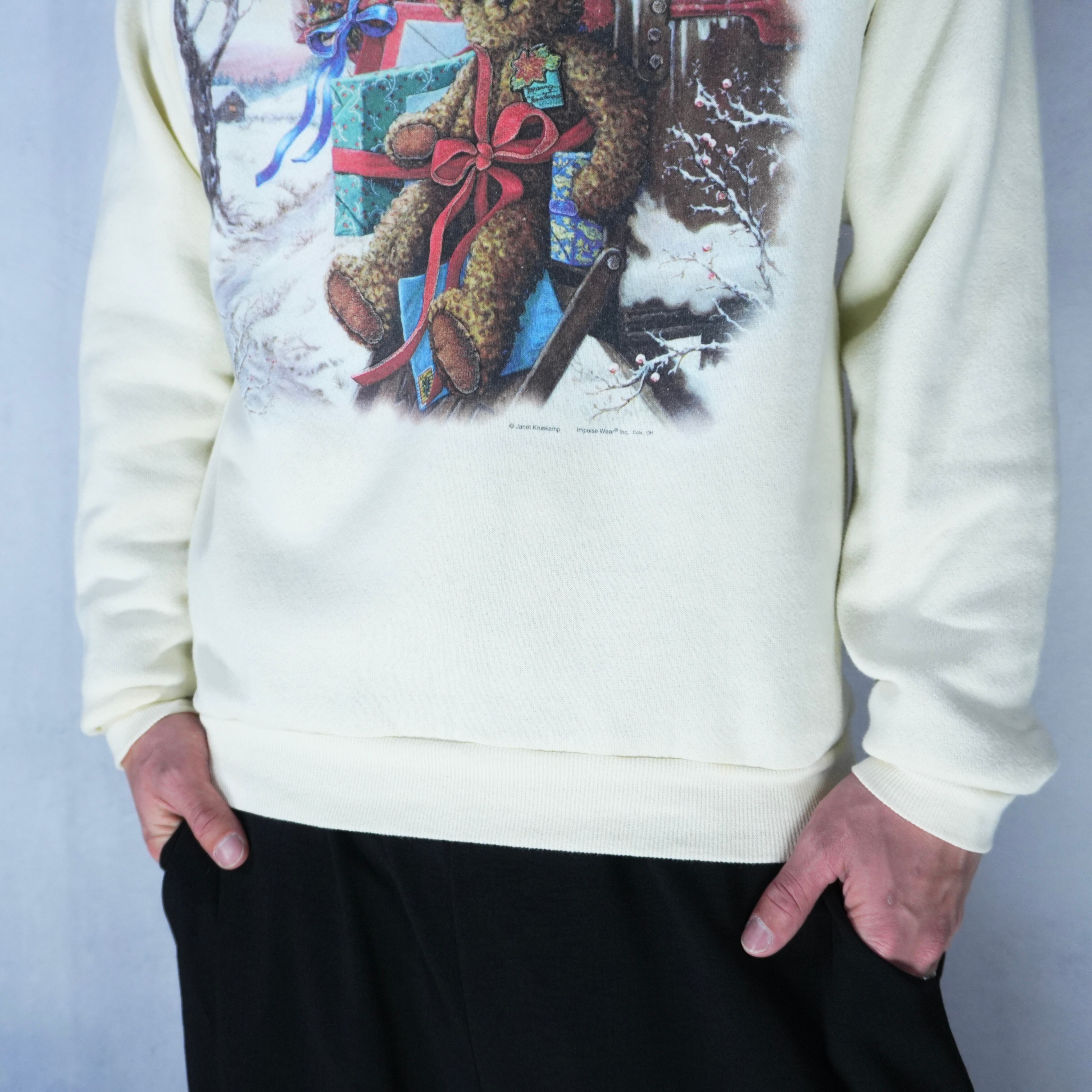" 90s 'Lee' good silhouette cream color 'Christmas Gift Bear' print sweat "