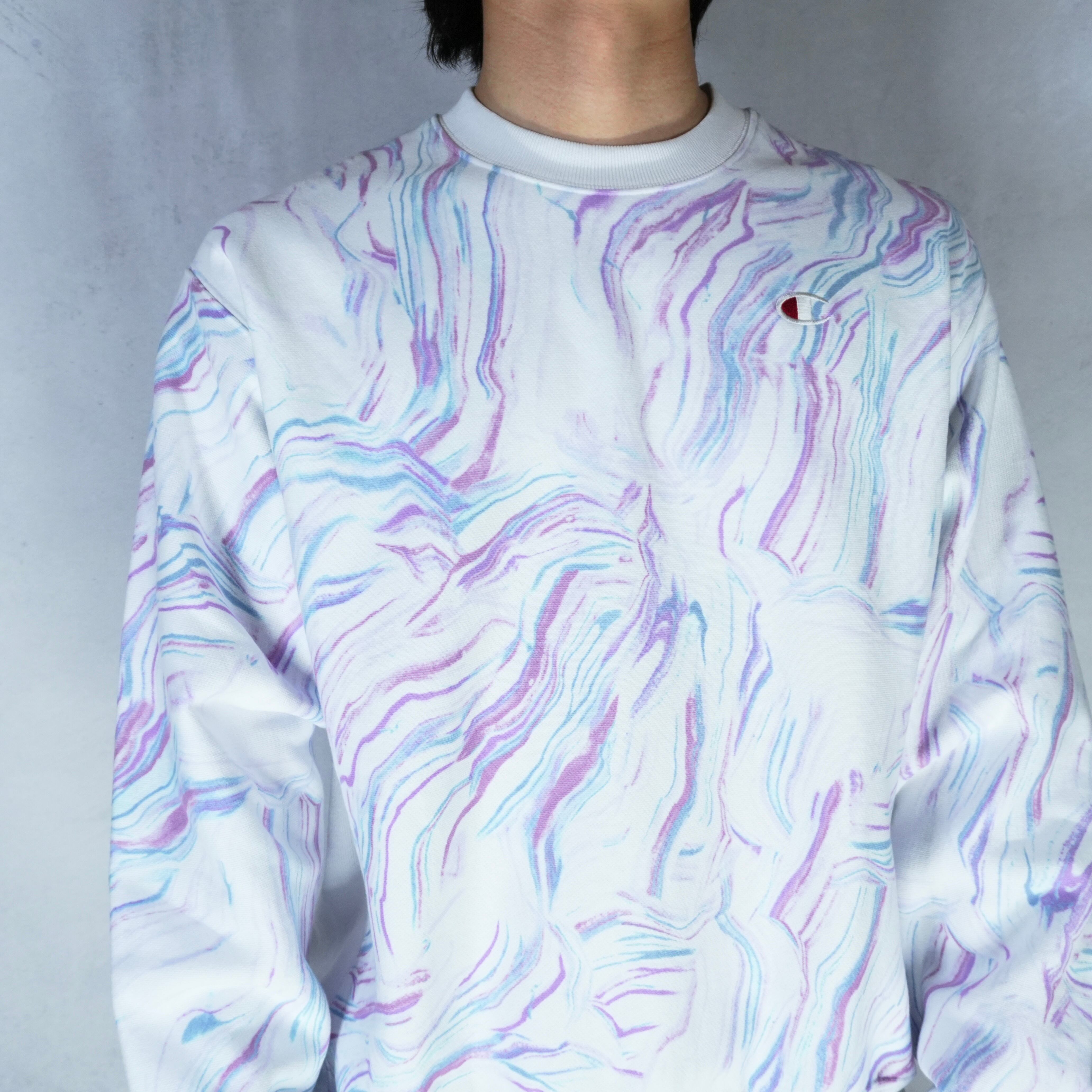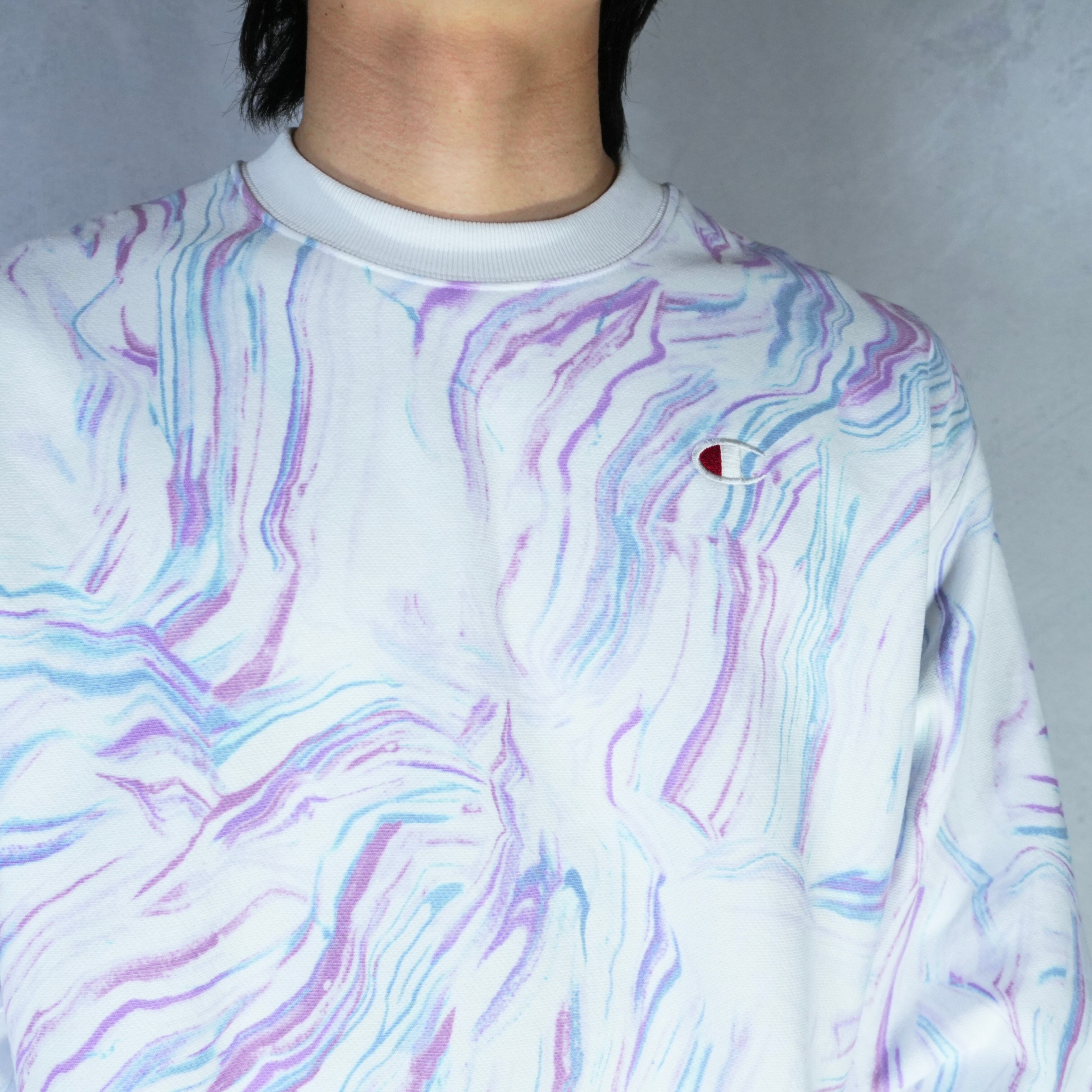 " 'Champion' good silhouette white color 'Marble pattern' sweat "