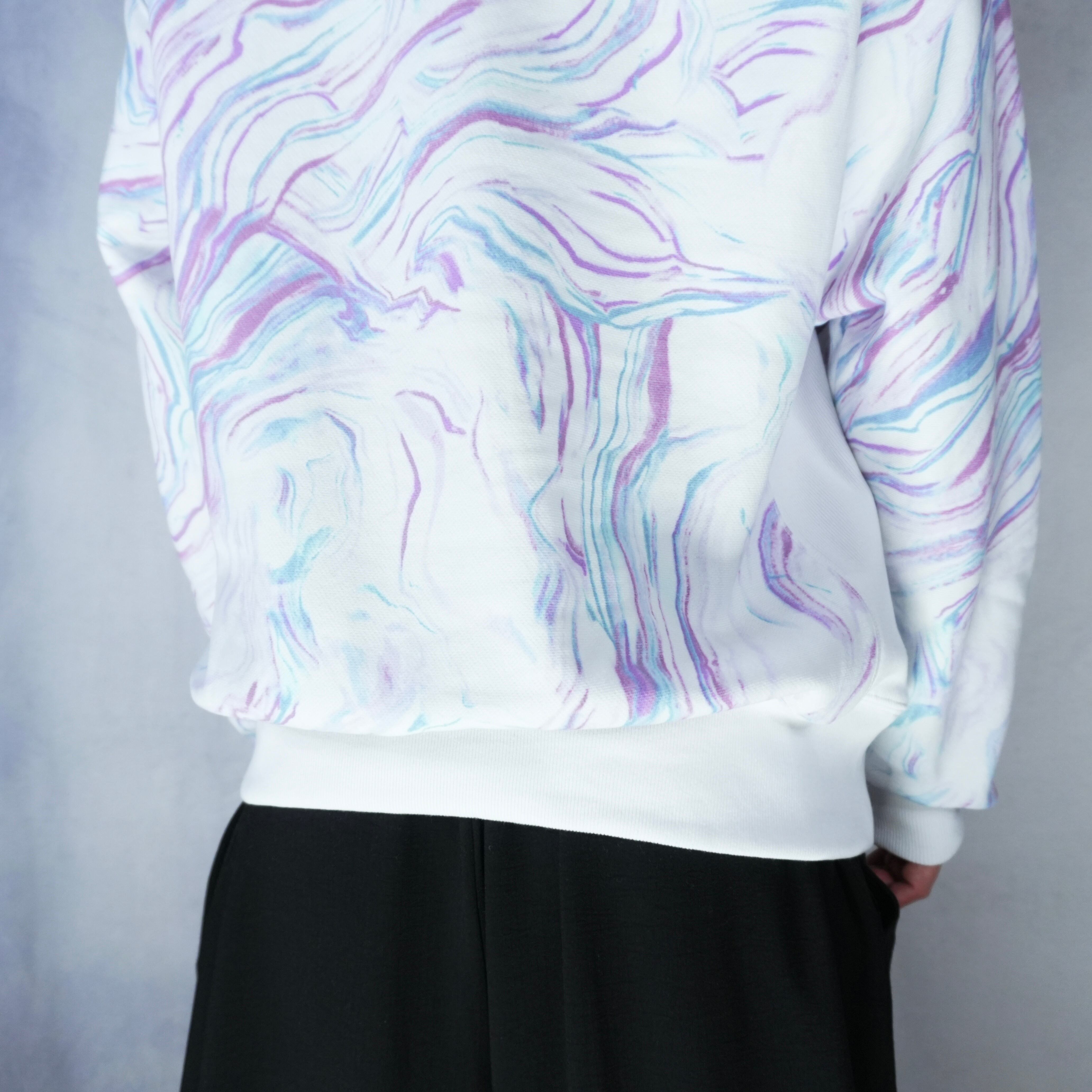 マーブル総柄デザインのスウェット.