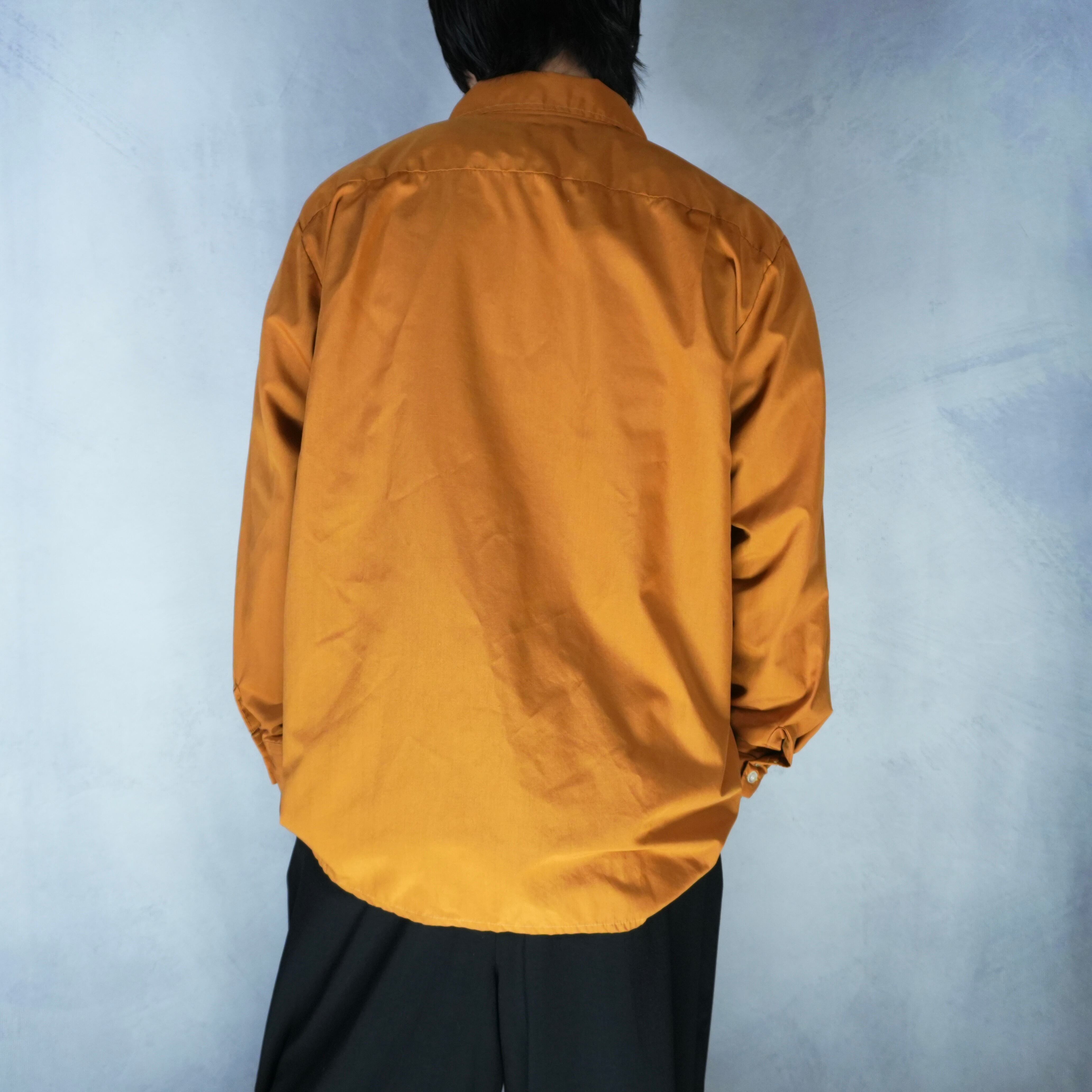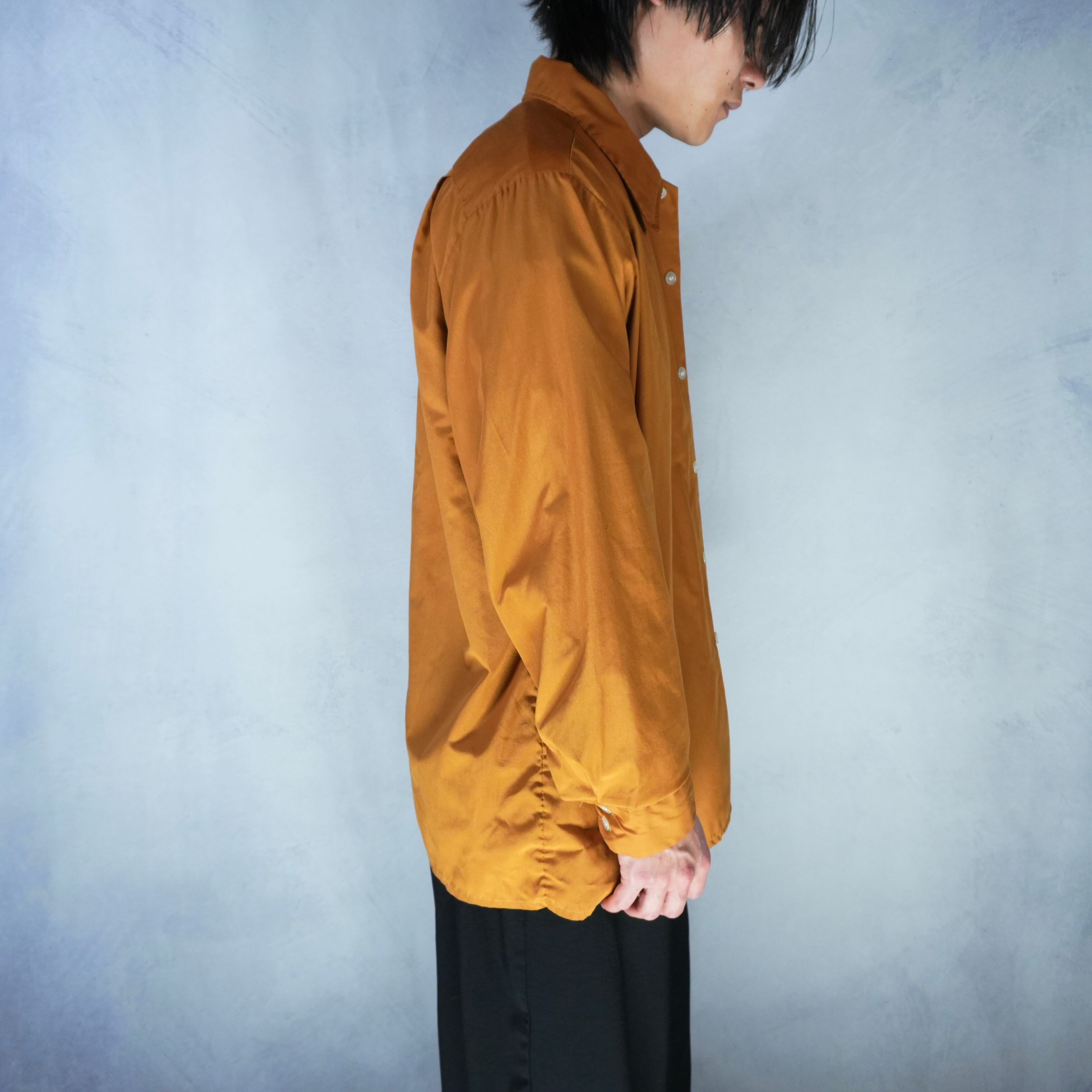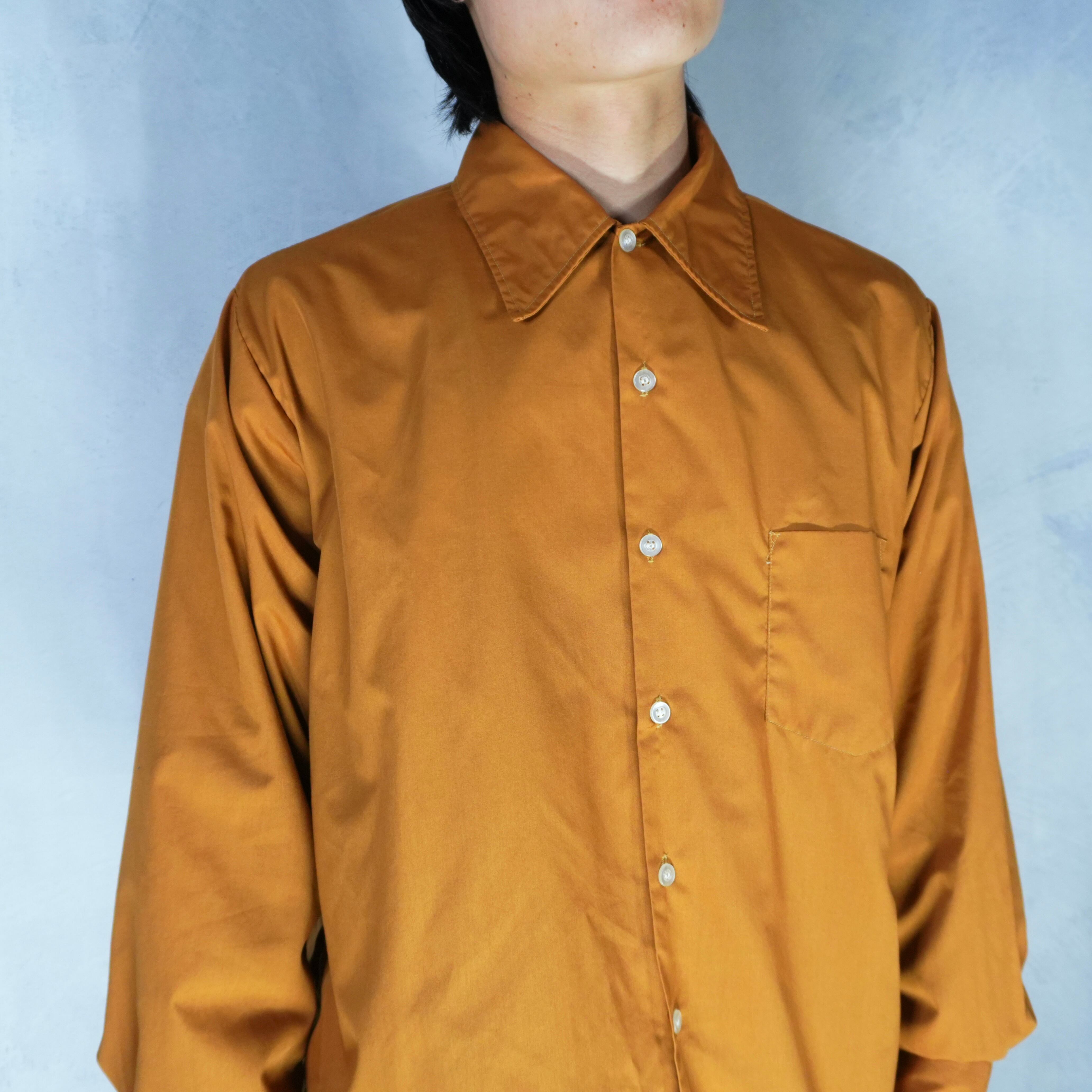 落ち着いた雰囲気が魅力の光沢のあるレンガ色シャツ.