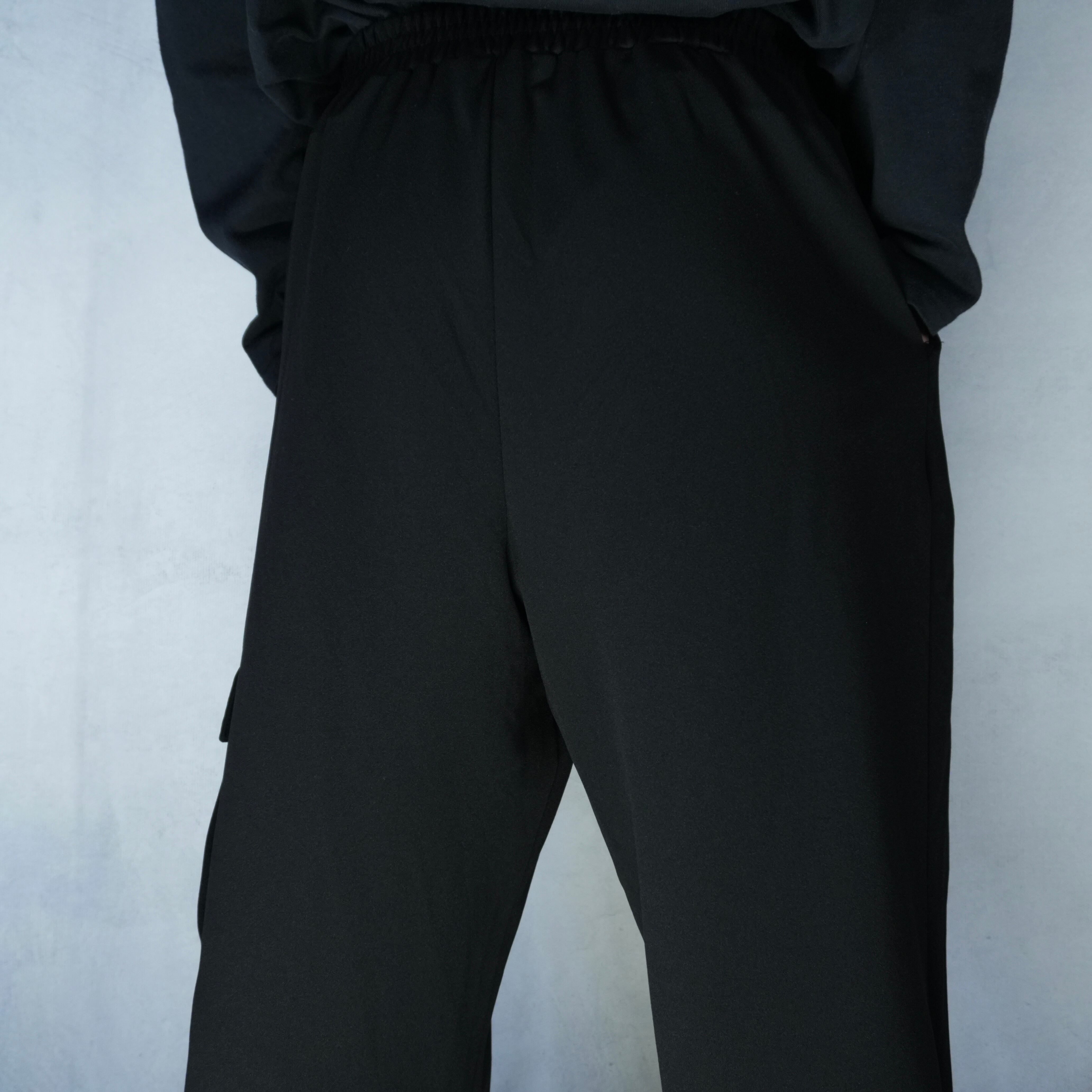 " 'Lily Morgan' wide & loose silhouette black color drawcord cargo easy-pants "