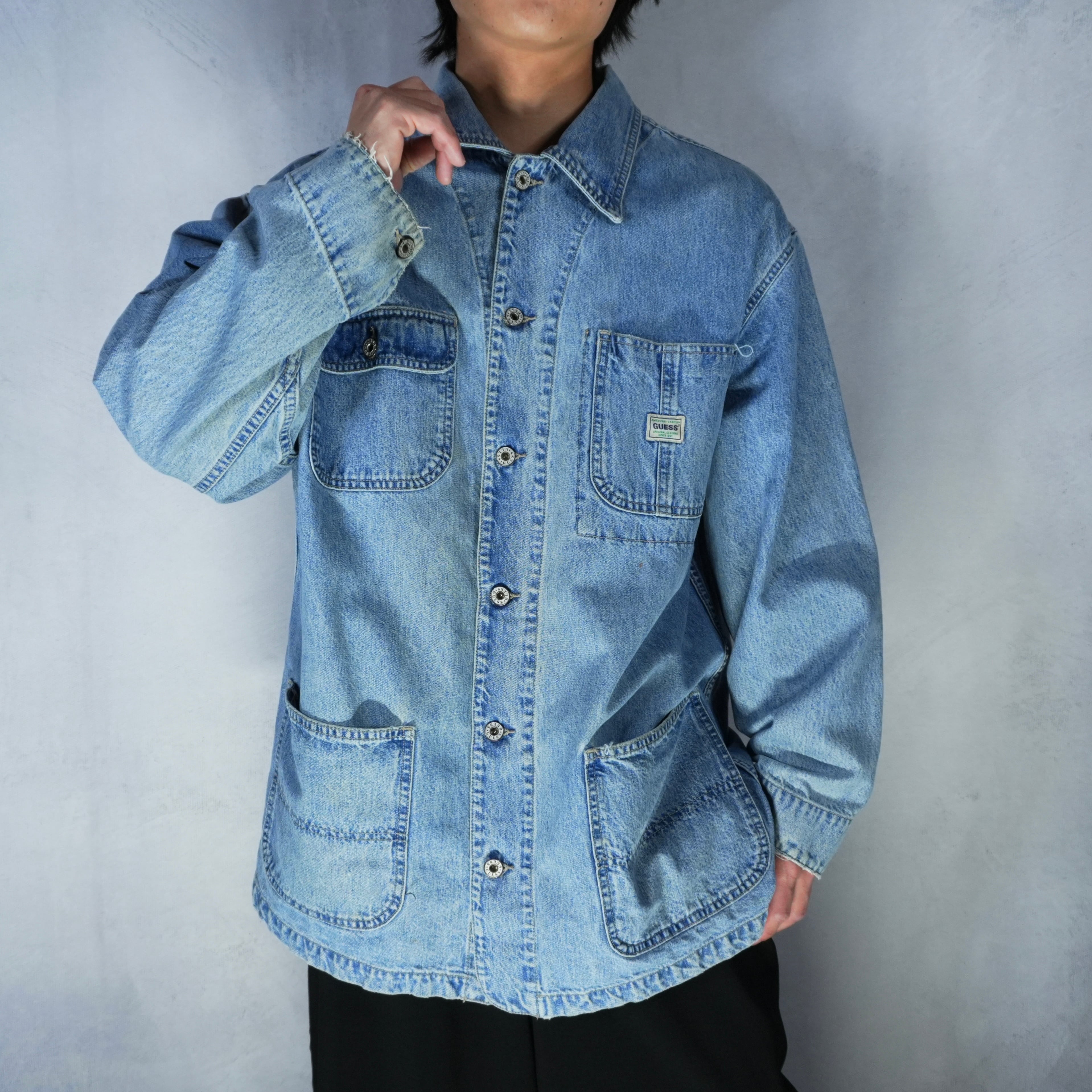胸ポケットと大きめのフロントポケットが特徴的で、ワークウェアらしいディテールのカバーオール.