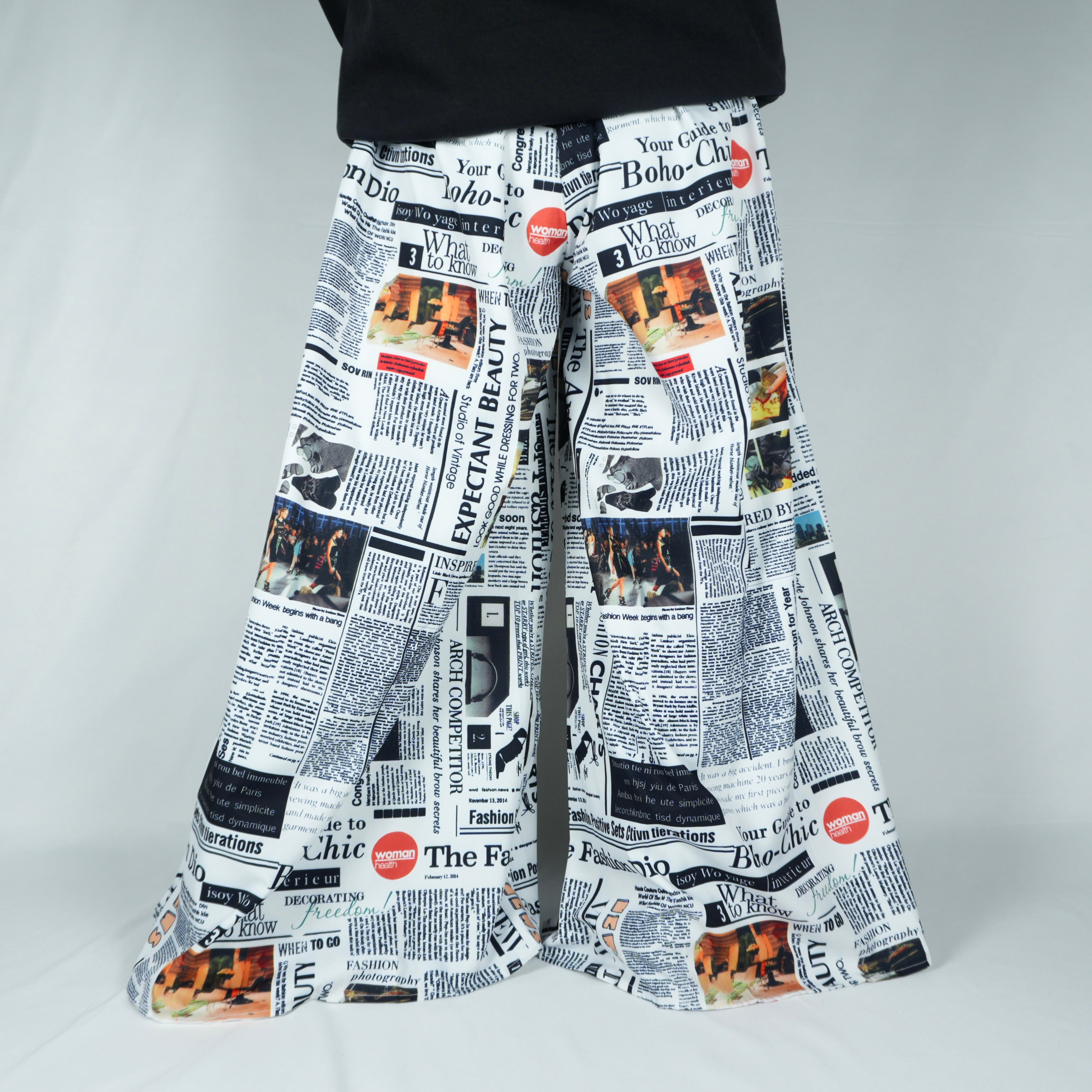 " wide loose silhouette ' News Paper ' design wide leg pants "