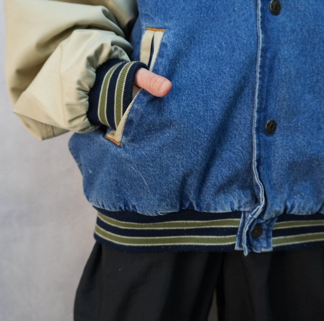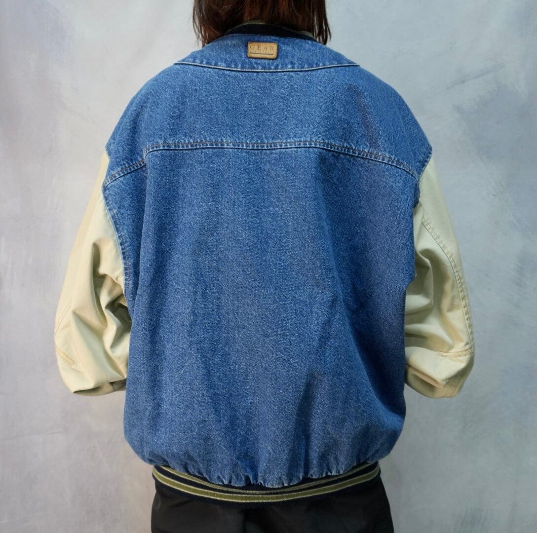 "gear bi-color switching denim stadium jacket"