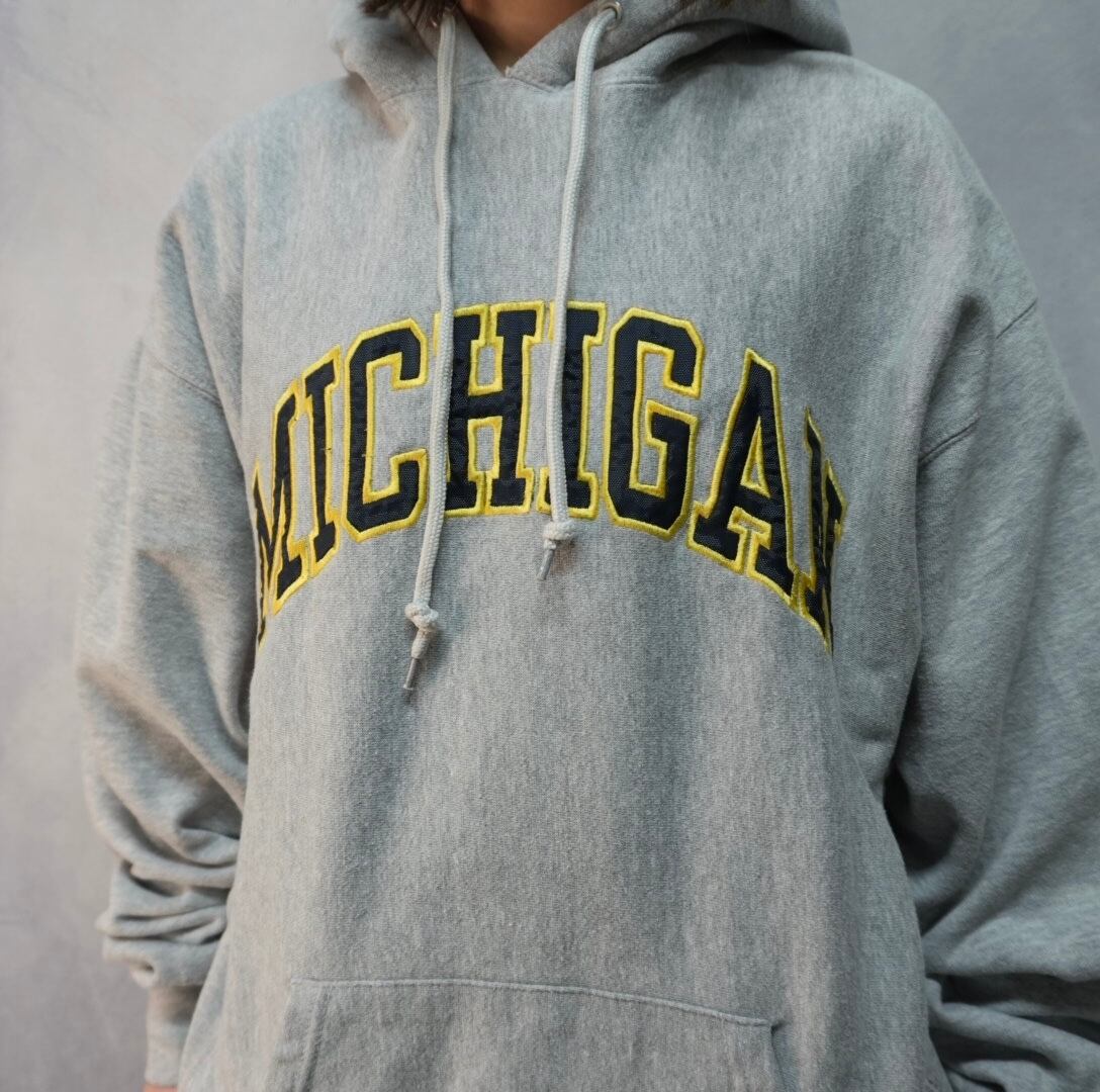 "over silhouette embroidery design "MICHIGAN" gray color sweat parka"